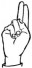 На ћирилици написано КОЈАДИН ПРИБИЋЕВИЋ састоји се из 17 слова [?]. Исписано ћириличном једноручном азбуком за глувонеме: